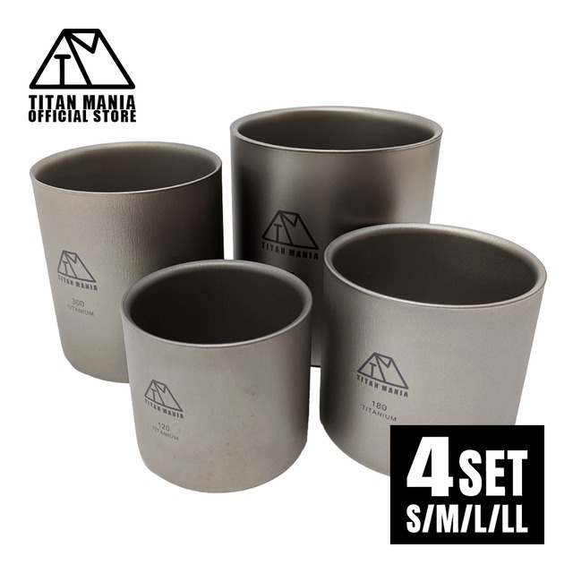 TITAN MANIA(チタンマニア)は、キャンプ・アウトドア好きの皆様に末永く愛用してもらえる高品質のキャンプギアを中心とした製品を大阪よりお届けするチタン製品専門ブランドです。 【商品詳細】 Sサイズ サイズ(約):57×62mm 重量(約):46g 容量(約):120ml Mサイズ サイズ(約):67×69mm 重量(約):58g 容量(約):180ml Lサイズ サイズ(約):84×76mm 重量(約):83g 容量(約):300ml LLサイズ サイズ(約):94×89mm 重量(約):108g 容量(約):450ml 材質:チタン 【セット内容】 本体(Sサイズ/Mサイズ/Lサイズ/LLサイズ)、収納袋 【商品説明】 超軽量!保温・保冷性に優れた二重構造。軽量で頑丈、スタッキングできるチタン製ダブルウォールマグカップ。温度変化が起きにくい二重構造のコップなので野外での食事におすすめ。チタンは嫌な金属臭がしないので飲み物の風味を損ないません。 積み重ねることで簡単に収納ができるスタッキンマグは、荷物を減らしたい・少なくしたいミニマムなウルトラライトキャンプにおすすめ。持ち運びに便利な通気性の良いメッシュ素材の収納袋付き。耐食性に優れたチタン製なのでサビてしまう心配がないので屋外での使用におすすめ。 マットな質感で手触りも良く、普段使いにも適しています。タンブラーやロックグラスとしてだけではなく取り皿や器としても使えます。軽量でコンパクトなのでソロキャンプ、釣りや登山、ハイキング、お花見やバーベキュー、バイクツーリングなど様々なアウトドアシーンで大活躍。
