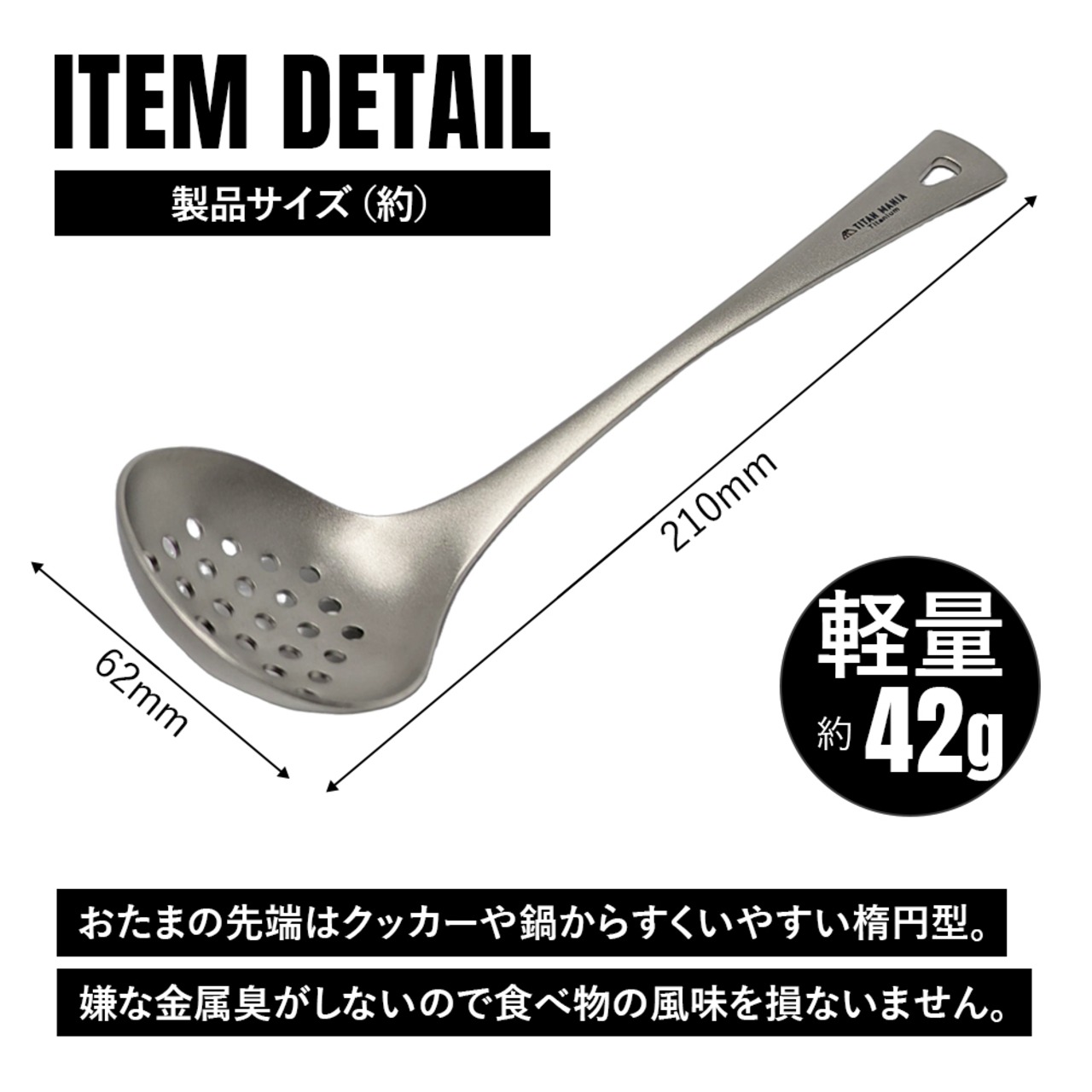 【アウトレット】穴あきおたま レードル スキマー チタン製 軽量 頑丈 直火 お玉 一体型 調理器具 キッチンツール キャンプ ソロキャンプ アウトドア用品 キャンプ用品 収納袋付き | TITAN MANIA(チタンマニア)公式オンラインストア