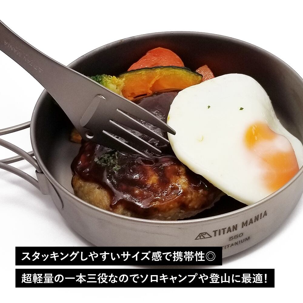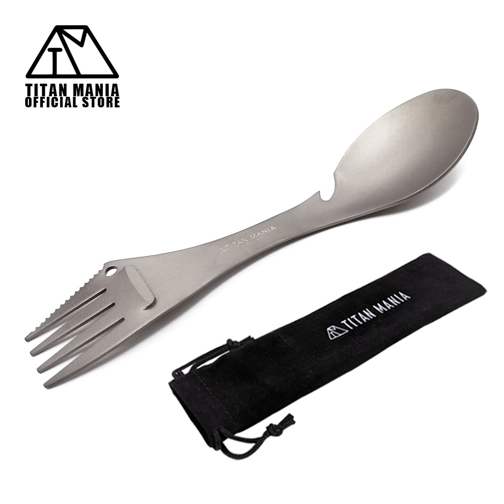 【アウトレット】3in1カトラリー チタン製 スプーン フォーク ナイフ 一体型 超軽量 頑丈 調理器具 ソロキャンプ BBQ バーベキュー アウトドア キャンプ用品 収納袋付き | TITAN MANIA(チタンマニア)公式オンラインストア