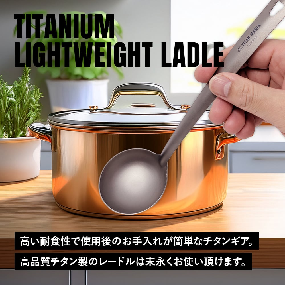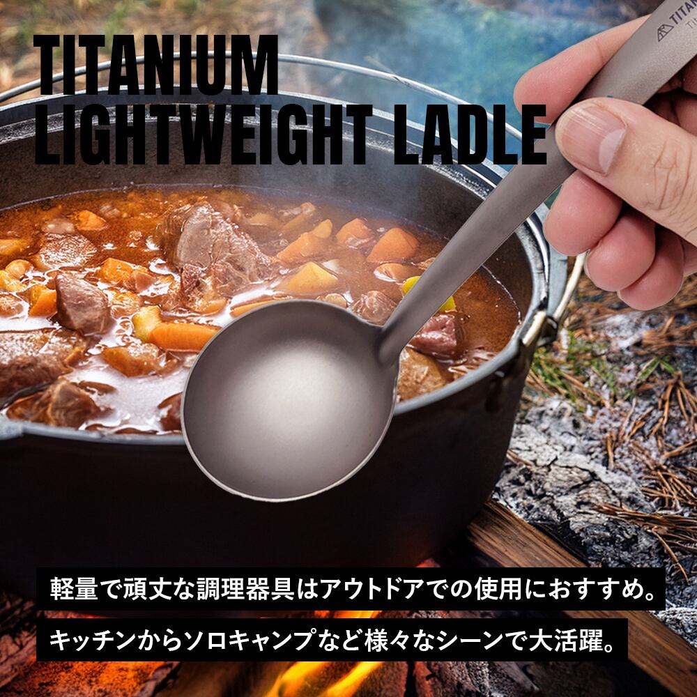 おたま(軽量タイプ) レードル スキマー チタン製 超軽量 頑丈 直火 お玉 一体型 調理器具 キッチンツール キャンプ ソロキャンプ アウトドア用品 キャンプ用品 収納袋付き | TITAN MANIA(チタンマニア)公式オンラインストア