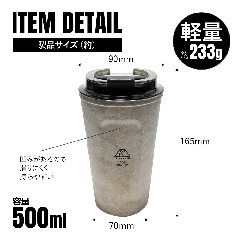 チタンタンブラー チタン製 蓋付き 500ml 持ち運び 軽量 頑丈 真空断熱 カップ 保温保冷 おしゃれ 密閉 コップ 水筒 サビない 結晶模様 アウトドア キャンプ ソロキャンプ アウトドア用品 キャンプ用品 | TITAN MANIA(チタンマニア)公式オンラインストア