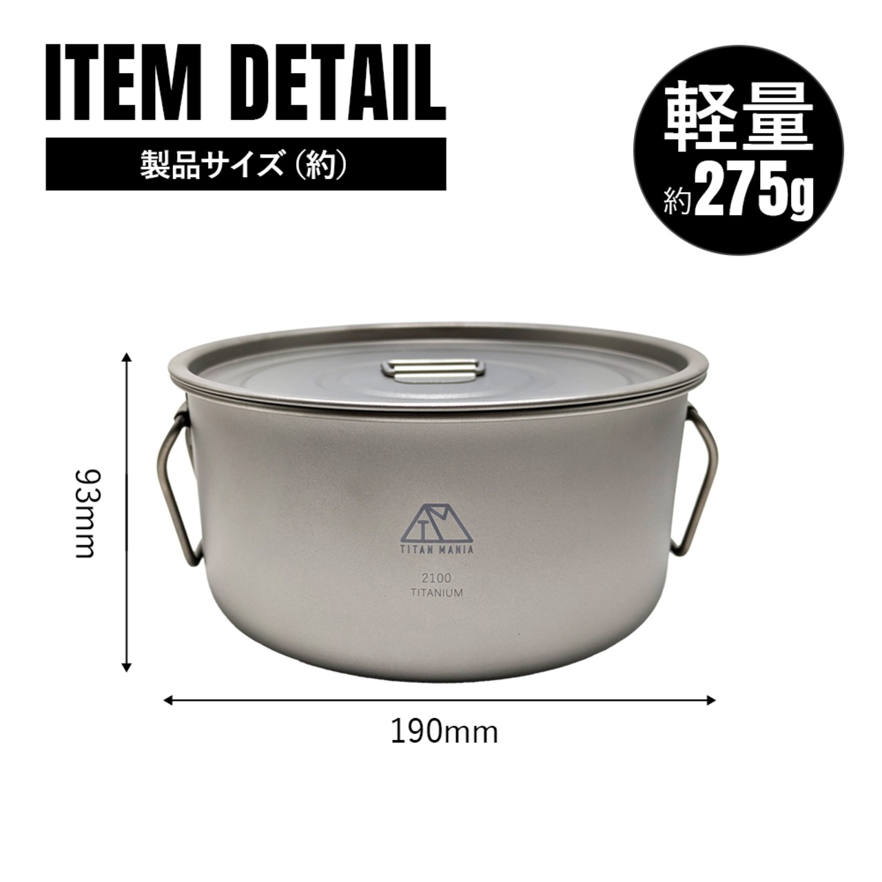 【アウトレット】鍋 2100ml 2.1L 蓋付き チタン製 超軽量 頑丈 直火 深型 両手 折りたたみハンドル付き キャンプ ソロキャンプ アウトドア用品 キャンプ用品 収納袋付き | TITAN MANIA(チタンマニア)公式オンラインストア