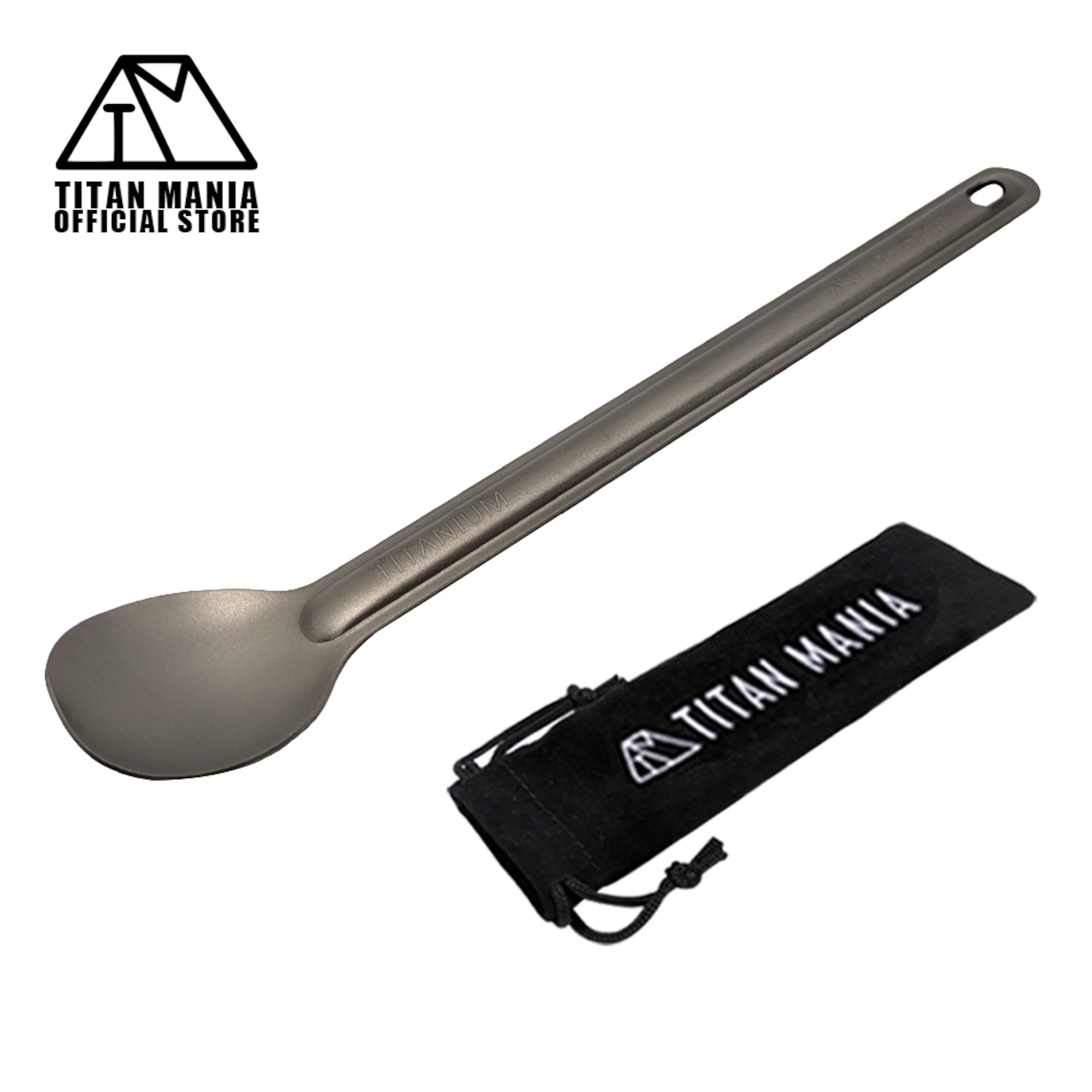 スプーン チタン製 軽量 頑丈 カトラリー ロング 長い柄 持ち運び 直火 調理器具 キャンプ ソロキャンプ アウトドア用品 キャンプ用品 収納袋付き | TITAN MANIA(チタンマニア)公式オンラインストア