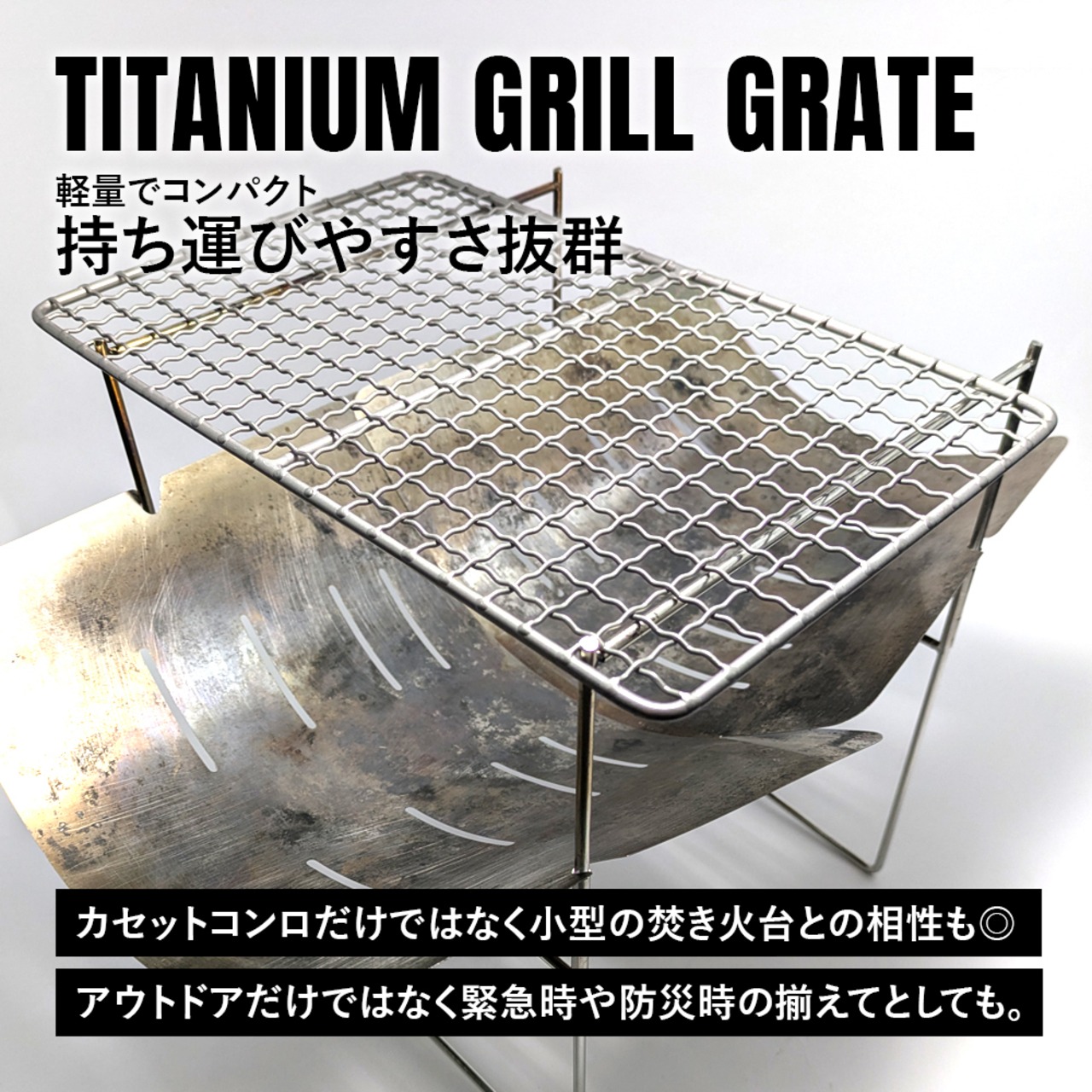 携行性が高く、装備や荷物を軽量化できるのでウルトラライト(UL)キャンプ、バーベキュー、登山など様々なアウトドアシーンで大活躍。BBQ用の焼肉焼網としてだけではなく、緊急時や防災時の備えとしても。高い耐食性でサビに強く頑丈なチタン製のキャンプギアは、アウトドアからキッチンまで、末永くお使いいただけます。