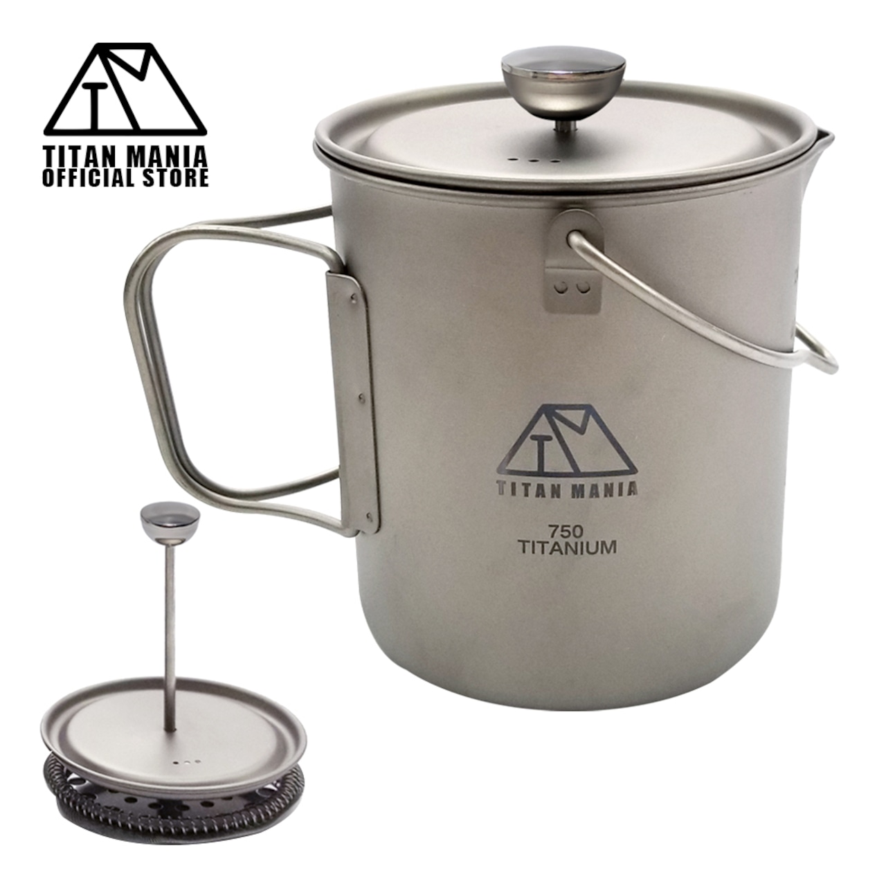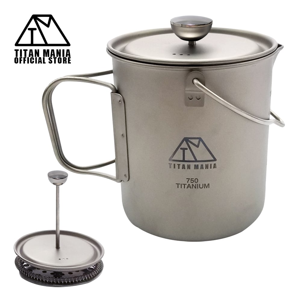 フレンチプレス チタン製 750ml 軽量 頑丈 直火 ベイルハンドル付き コーヒー コーヒープレス クッカー ポット パーコレーター 調理器具 ソロキャンプ アウトドア キャンプ用品 収納袋付き | TITAN MANIA(チタンマニア)公式オンラインストア