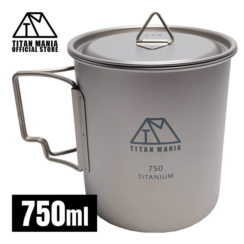 750mlカップ チタン製 折り畳みハンドル付き 蓋付き 超軽量 頑丈 直火OK シングルマグカップ クッカー ソロキャンプ BBQ バーベキュー アウトドア キャンプ用品 収納袋付き | TITAN MANIA(チタンマニア)公式オンラインストア