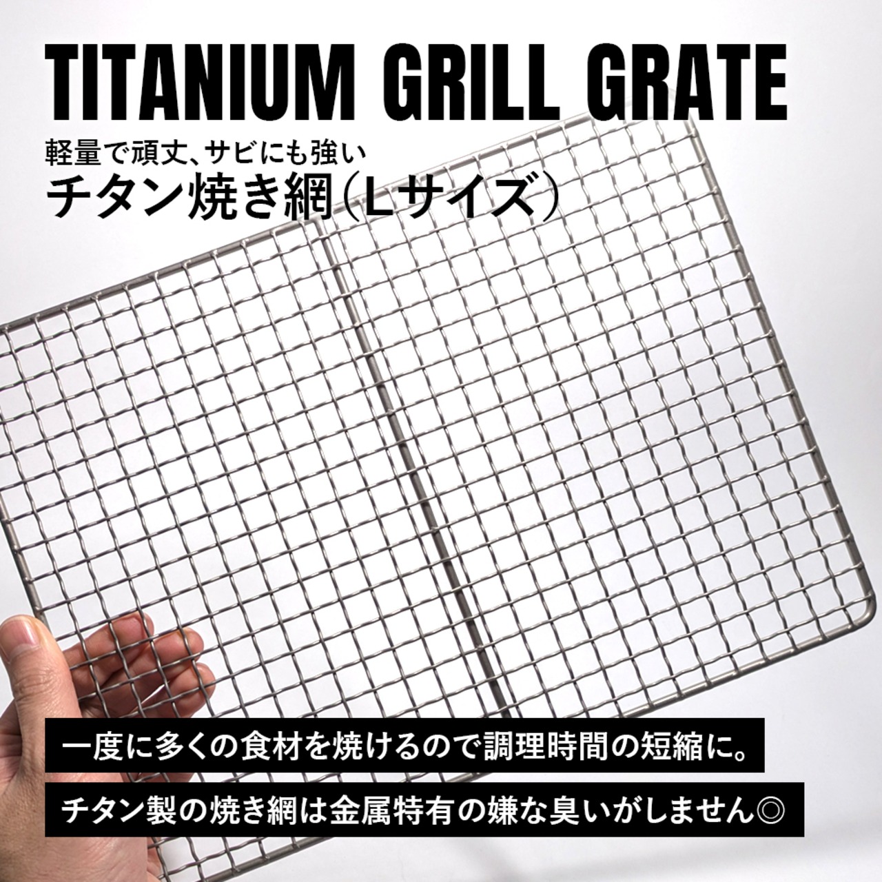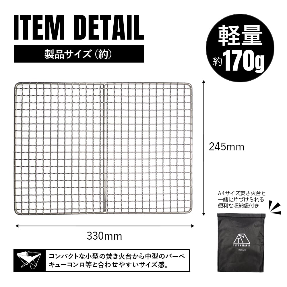 焼き網 L チタン製 バーベキュー 網 ソロキャンプ 軽量 角型 万能 頑丈 大型 33cm 330mm ネット BBQ アウトドア用品 キャンプ用品 持ち運び便利 収納袋付き | TITAN MANIA(チタンマニア)公式オンラインストア