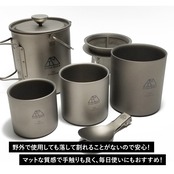 積み重ねることで簡単に収納ができるスタッキンマグは、荷物を減らしたい・少なくしたいミニマムなウルトラライトキャンプにおすすめ。持ち運びに便利な通気性の良いメッシュ素材の収納袋付き。耐食性に優れたチタン製なのでサビてしまう心配がないので屋外での使用におすすめ。