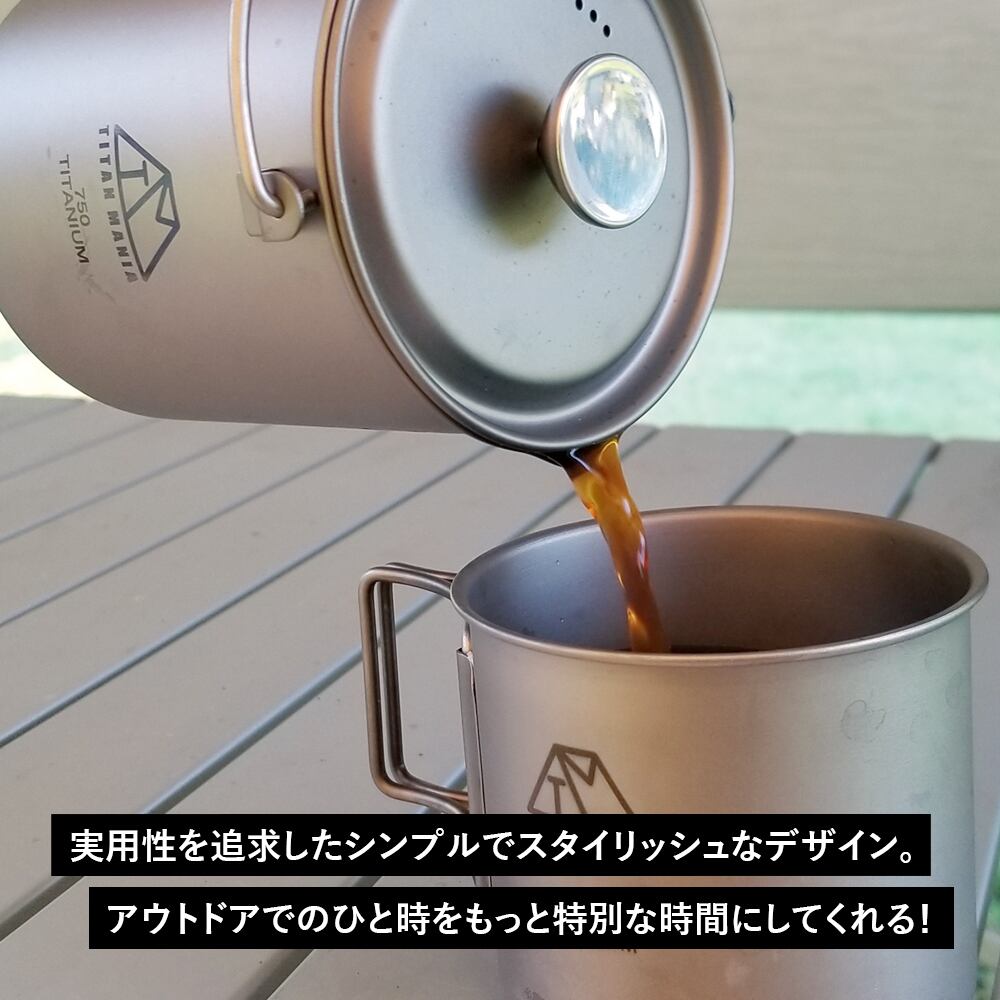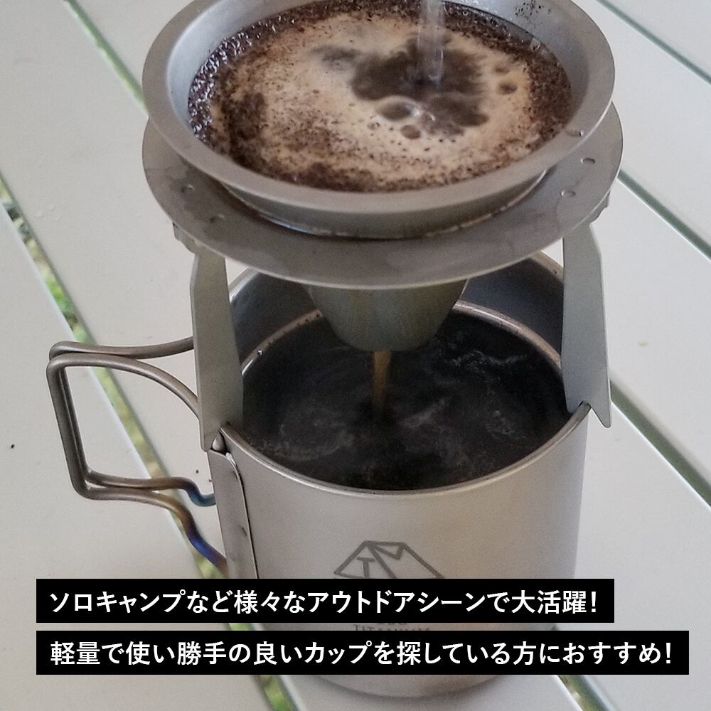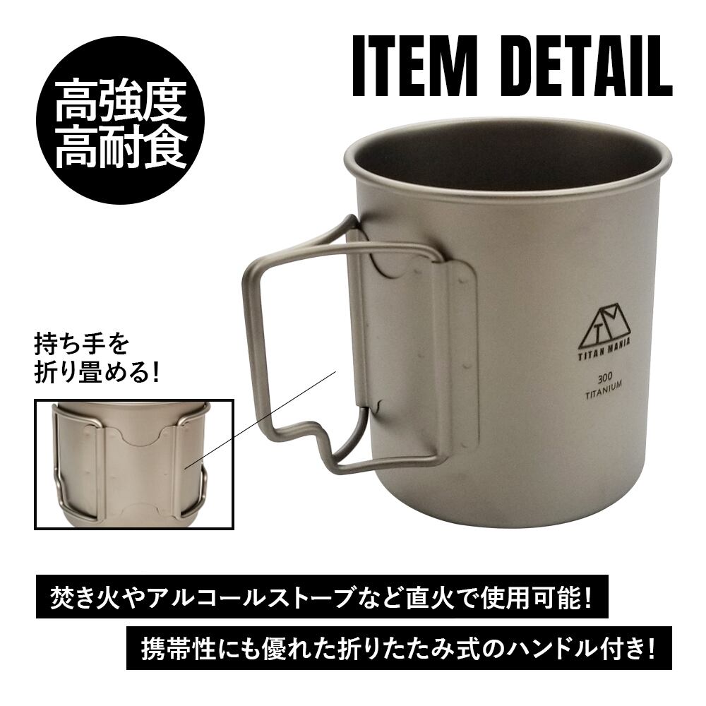 【アウトレット】コーヒーカップ 300ml チタン製 折り畳みハンドル付き 超軽量 頑丈 直火OK シングルマグカップ クッカー ソロキャンプ BBQ バーベキュー アウトドア キャンプ用品 収納袋付き | TITAN MANIA(チタンマニア)公式オンラインストア