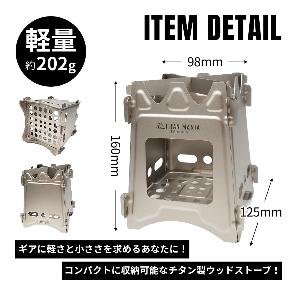 ■軽量!頑丈!錆びにくい!ソロキャンプやBBQなどアウトドアで一つは持っておきたいチタン製ミニ焚き火台。煙突効果が高い設計で非常に優れた燃焼効率を実現! ゴトクがついているのでお湯を沸かすことはもちろんフライパンや鍋などクッカーでしっかり調理することが可能!