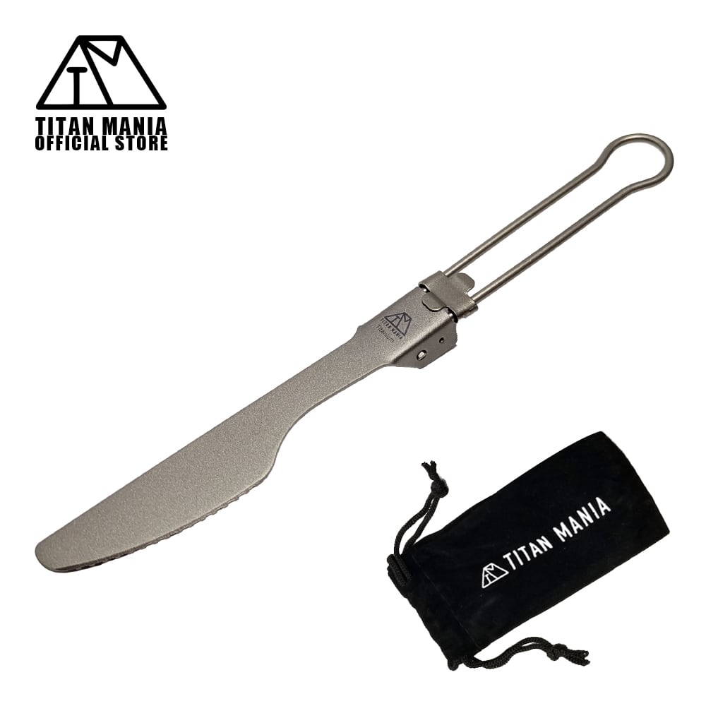【アウトレット】折りたたみ ナイフ テーブルナイフ チタン製 フォールディング カトラリー 超軽量 頑丈 食器 調理器具 ソロキャンプ BBQ バーベキュー アウトドア キャンプ用品 収納袋付き | TITAN MANIA(チタンマニア)公式オンラインストア