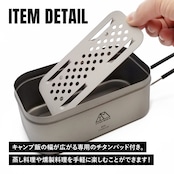 ■軽量!頑丈!錆にも強いチタン製メスティン(2合用)。チタンパッド(蒸し網)付きなので、蒸し料理や燻製料理にも対応可能!マットな質感で扱いやすく、持ち運びにも便利なサイズ感。ご飯を約2合まで炊飯可能!1〜2人用に適したサイズです。チタン製で軽量&頑丈、アルコールストーブやカトラリーなどをスタッキングすることが可能なのでソロキャンプや登山などにおすすめです!