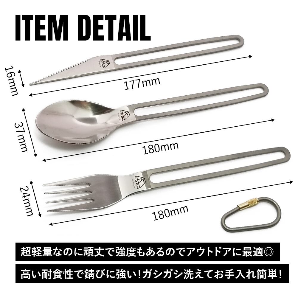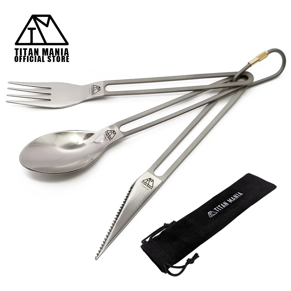 【アウトレット】カトラリーセット チタン製 超軽量 頑丈 スプーン フォーク ナイフ キャンプ アウトドア バーベキュー ソロキャンプ 調理器具 キャンプ用品 カラビナ付き 収納袋付き | TITAN MANIA(チタンマニア)公式オンラインストア