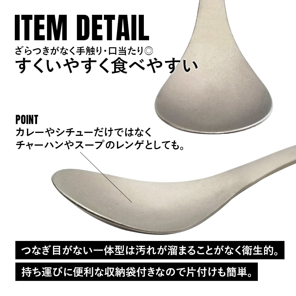 【アウトレット】【クーポンで5%OFF★クーポンコード:UG7QMJ2P】カレースプーン チタン製 軽量 頑丈 直火 スプーン レンゲ 一体型 調理器具 キッチンツール キャンプ ソロキャンプ アウトドア用品 キャンプ用品 収納袋付き | TITAN MANIA(チタンマニア)公式オンラインストア