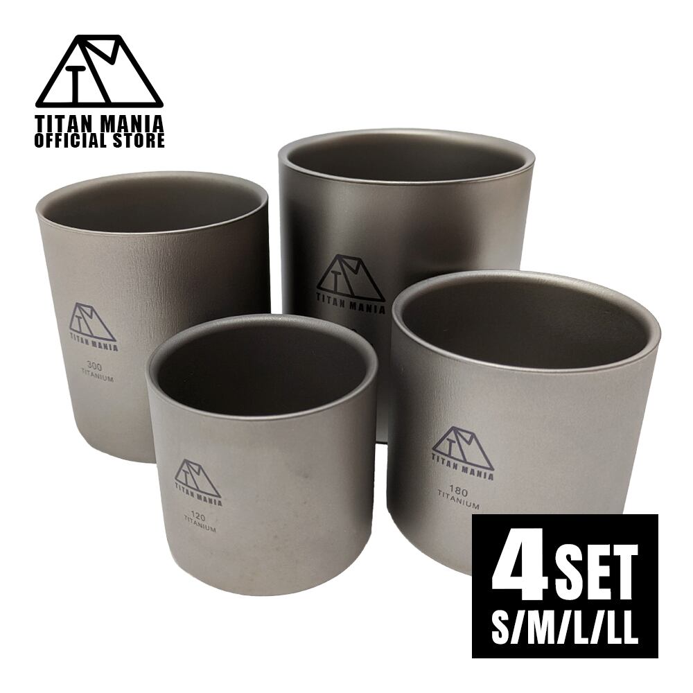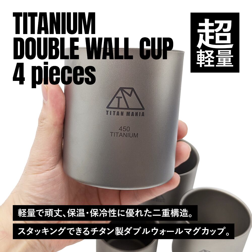 【アウトレット】ダブルウォールカップ 4点セット チタン製 二重構造 超軽量 頑丈 スタッキングマグ カップ 湯呑 食器 ソロキャンプ BBQ バーベキュー アウトドア キャンプ用品 収納袋付き | TITAN MANIA(チタンマニア)公式オンラインストア