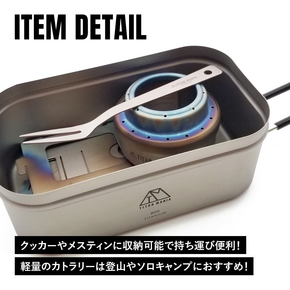 ■チタンは熱伝導率が低く熱くなりにくい特長があり、直接火にかけることもできるので、食事にだけでなく調理にも使えます!金属特有の金属臭が少ないので、直接口をつけるカトラリーにはチタン製がおすすめ!耐食性が高いので錆びてしまう心配なし!便利な専用の収納袋付き。バッグの中に入れておいても他のギアと直接当たることがないので傷もつきにくい!使用後にすぐに片づけることができて、持ち運びも楽々!カバンやリュックに入れても邪魔にならないコンパクトなサイズ感。